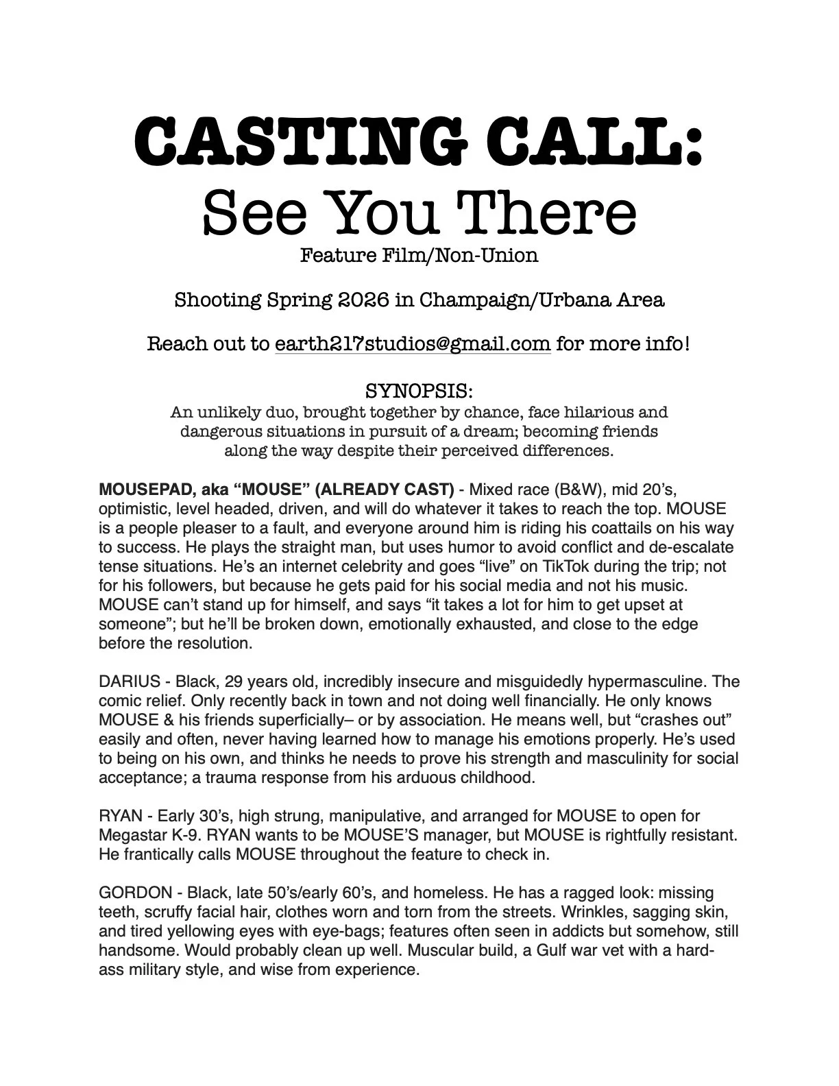 Now Casting For Feature Film: See You There